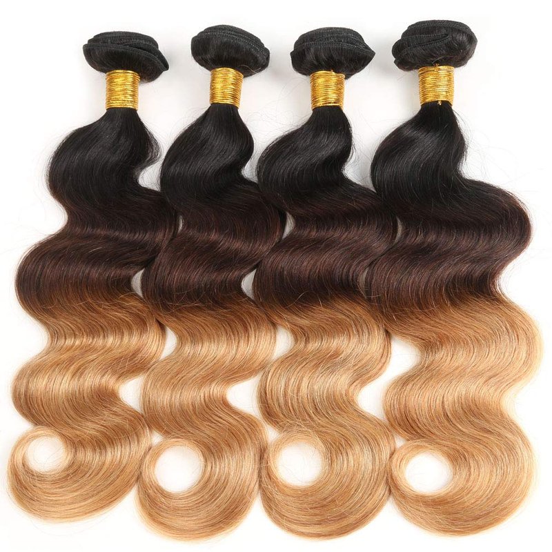 - Hair Type: #T1B/4/27 body wave bundles with closure, Selected high quality unprocessed 100% Brazilian virgin human hair.