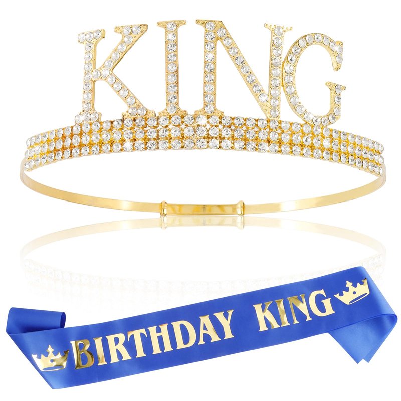 - [Unique Design]: The crown is studded with delicate rhinestones, looks lovely and noble, the crown looks dazzling on everyone's head. Elegant and stylish crown will give you a luxurious feel and make you stand out from the crowd. The word βBIRTHDAY KINGβ is clearly printed on the sash and it will surly be loved by all.