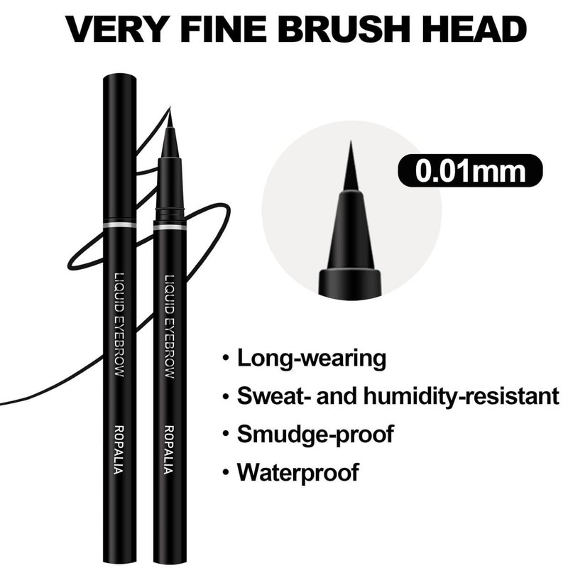 Ultrafine liquid eyebrow pencil: The nib of 0.01mm is very thin, and the brush head is very soft. It is very suitable for sketching the eyebrow shape and filling the color on the eyebrows. It can show color with a single stroke.