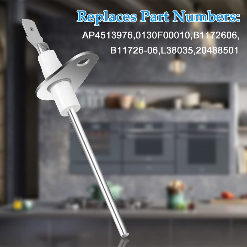 - [0130F00010 Flame Sensor]: 2 PACK 0130F00010 Flame Sensor (Total length:3.8 inches/probe:95 mm) used on the gas stove machine to detect the flame and protetct you from gas hazards and close the valve in time.