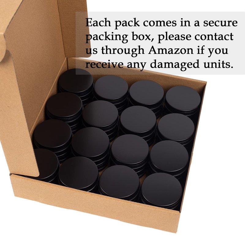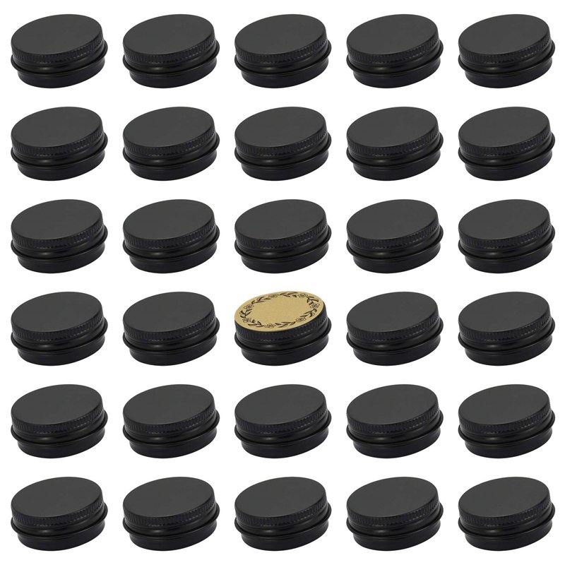 - PACKAGE INCLUDE: 32pcs black screw top round tin cans + 32pcs blank marking labels