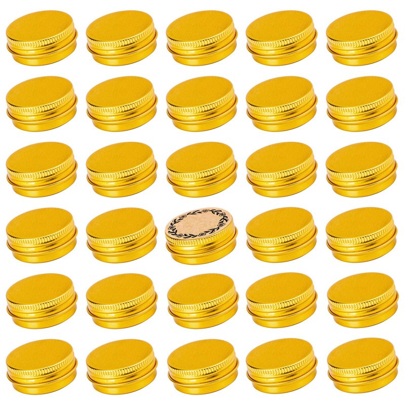 - PACKAGE INCLUDE: 32pcs gold screw top round tin cans + 32pcs blank marking labels