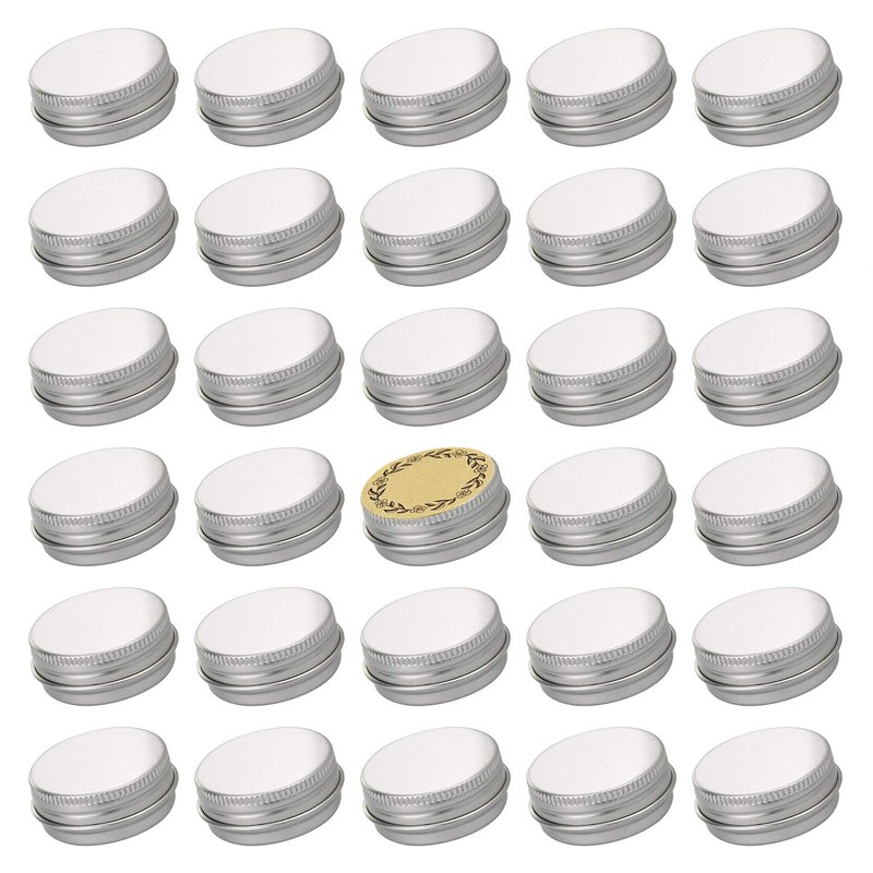 - PACKAGE INCLUDE: 32pcs silver screw top round tin cans + 32pcs blank marking labels