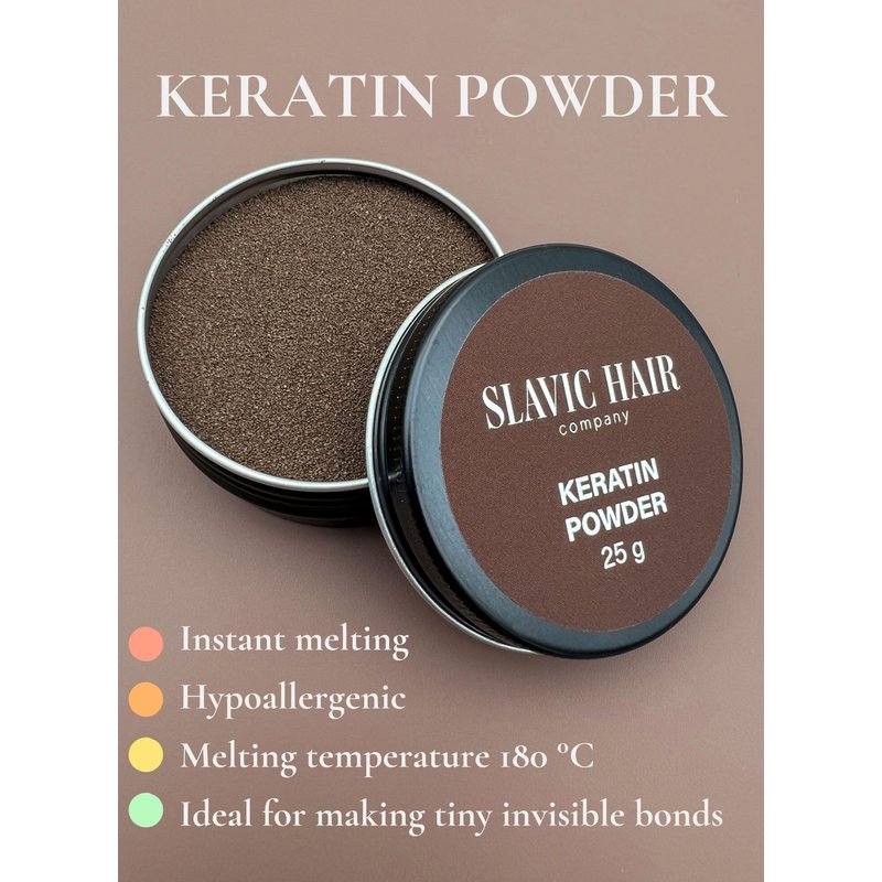 Original Italian high-melting Light Brown hair extension keratin powder. Firmly fixes bonding extensions, prevents them from sliding down while wearing and allows to form a bond of any size - even small and neat ones. Suitable for hair extensions without pre-bonding. No bond breakage, no crumbling, no residue on the fingers. No harmful substances - safe for hair. Much lower consumption compared to keratin beads. Easily removable. Melting temperature 180 °C. Hypoallergenic. Package: 1 can/0.9 oz. Colour: Light Brown.