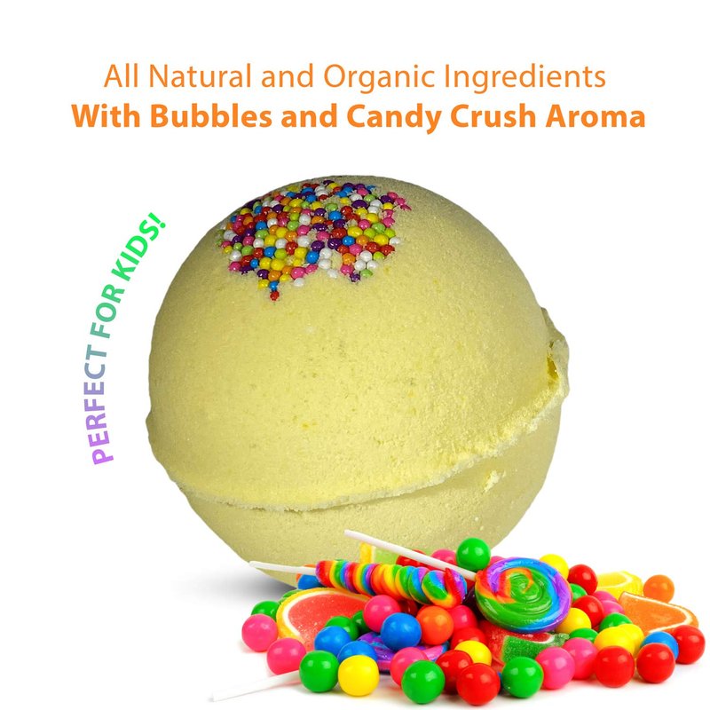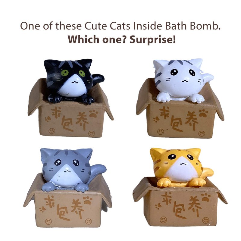 - 1 BATH BOMB WITH TOY INSIDE: Cute CAT IN THE BOX toy inside Bath Bombs give FUN Bath time For kids. Your girls and boys will LOVE delicious Candy Crush Aroma, a lot of Fizzes and Bubbles and surprise toys inside.