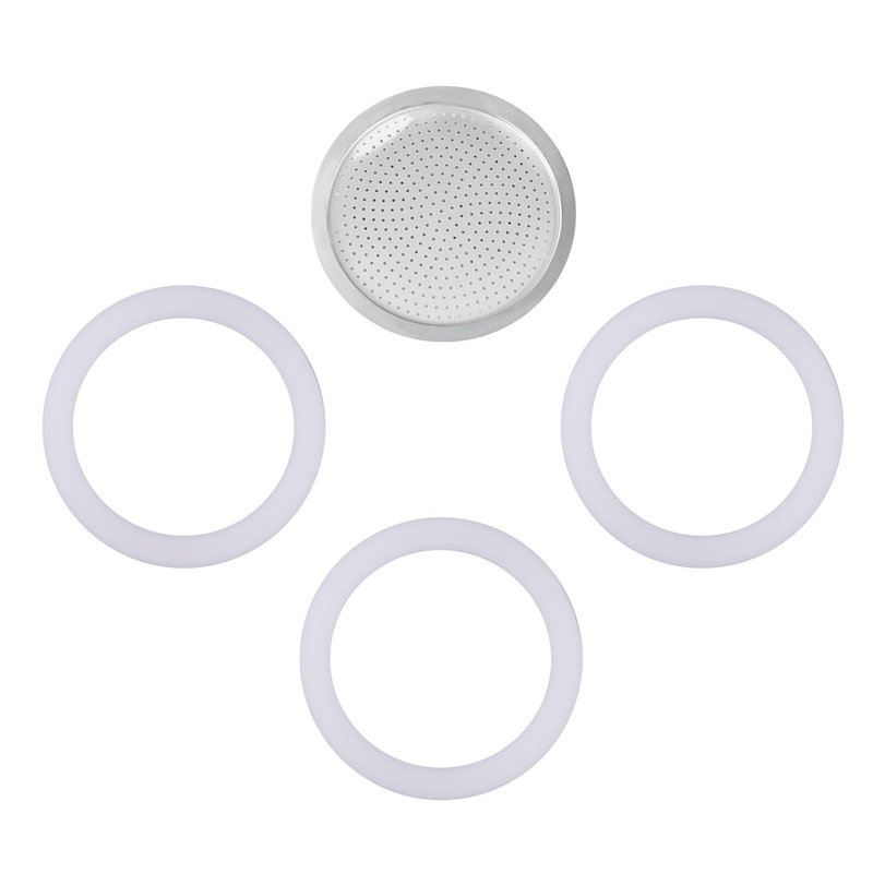 1 Filter and 3 Silicone Gasket Seals Replacement for Aluminium Moka Pot and Stovetop Espresso Coffee Maker (9 Cup)