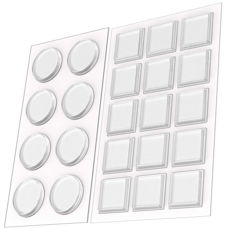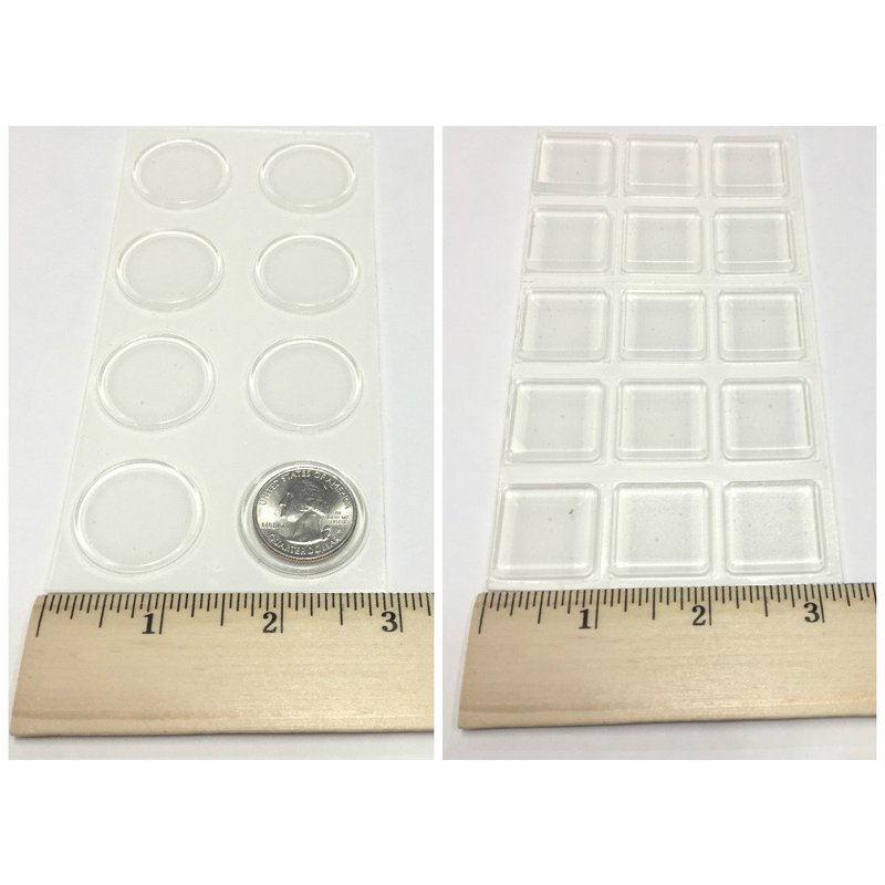 1 Inch Clear Adhesive Bumpers Combo Pack (Square, Circle) - Made in USA - Set of 23 Transparent Glass Protective Pads, Self Stick Rubber Pads for Glass Table Top, Furniture Feet, Picture Frames