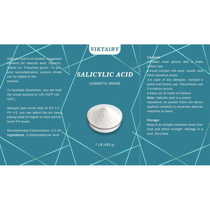 - Original Ingredients: Viktairy salicylic acid for skin is cosmetic grade, can be used in DIY cleanser, face wash, body wash, toner, spray, gel, lotion, shampoo, mask, serum, soap and face peel.