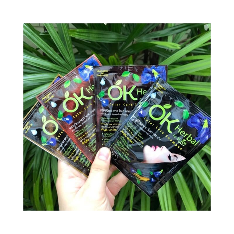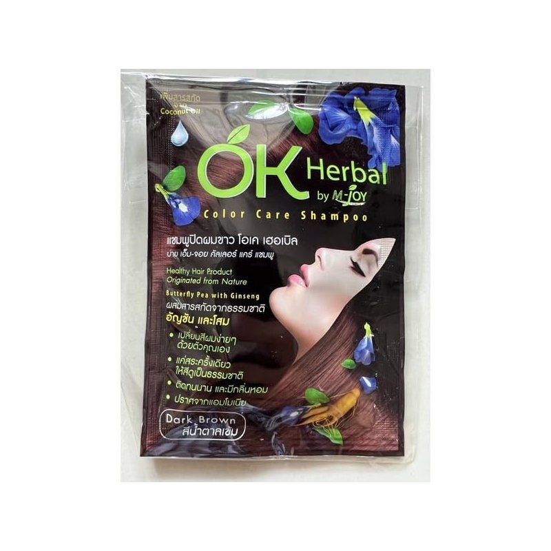 (1 Pack) Hair color change with herbs Brand OK HERBAL Color Care Shampoo Dark Brown 30ml