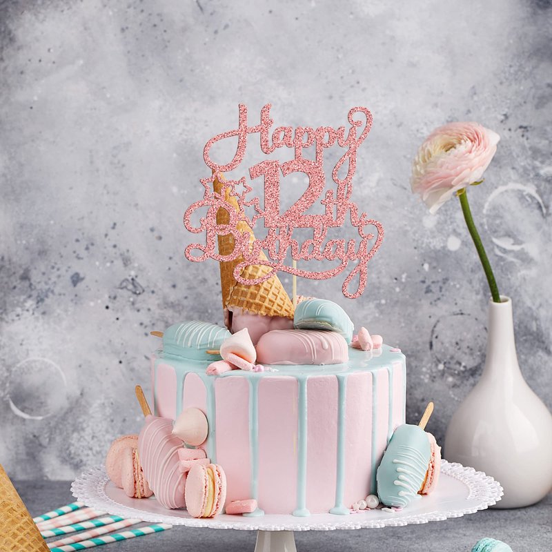 - 🍰【Package Included】: 1Pc Happy 12th Birthday Cake Topper. This Happy 12th Birthday cake topper is very nice and enough quantity for your use. Perfect for happy 12th birthday party!