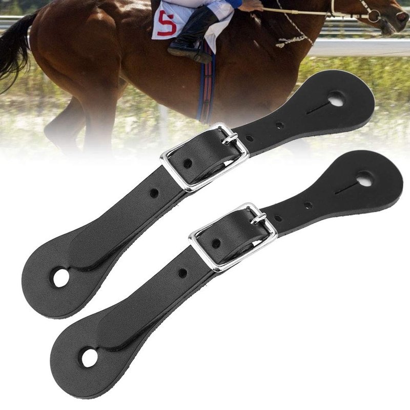 1 Pair Spur Straps, Adult Western style Spurs Leather Belt Genuine Leather Horse Riding Accessories(Black)