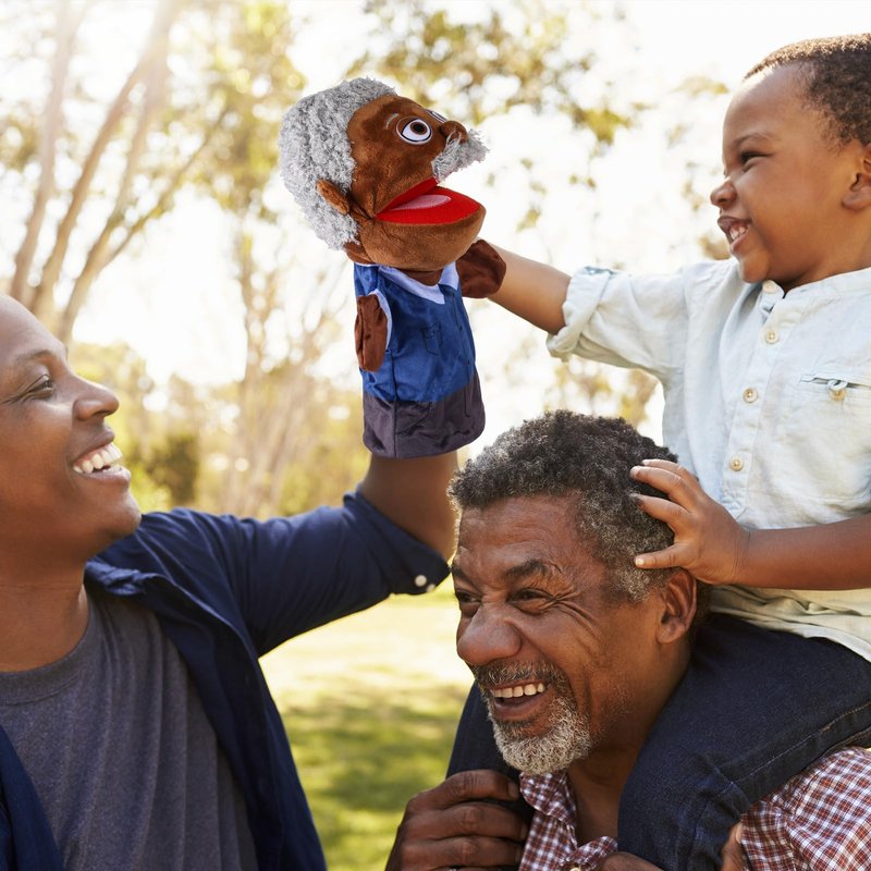 1 Pcs Family Hand Puppets 12 Inch Grandparents Mom Dad Brother Sister Plush Hand Puppet Toys Role-Play Toy Puppets for Kids Storytelling Imaginative Pretend Play Teaching Preschool(Black Grandfather)