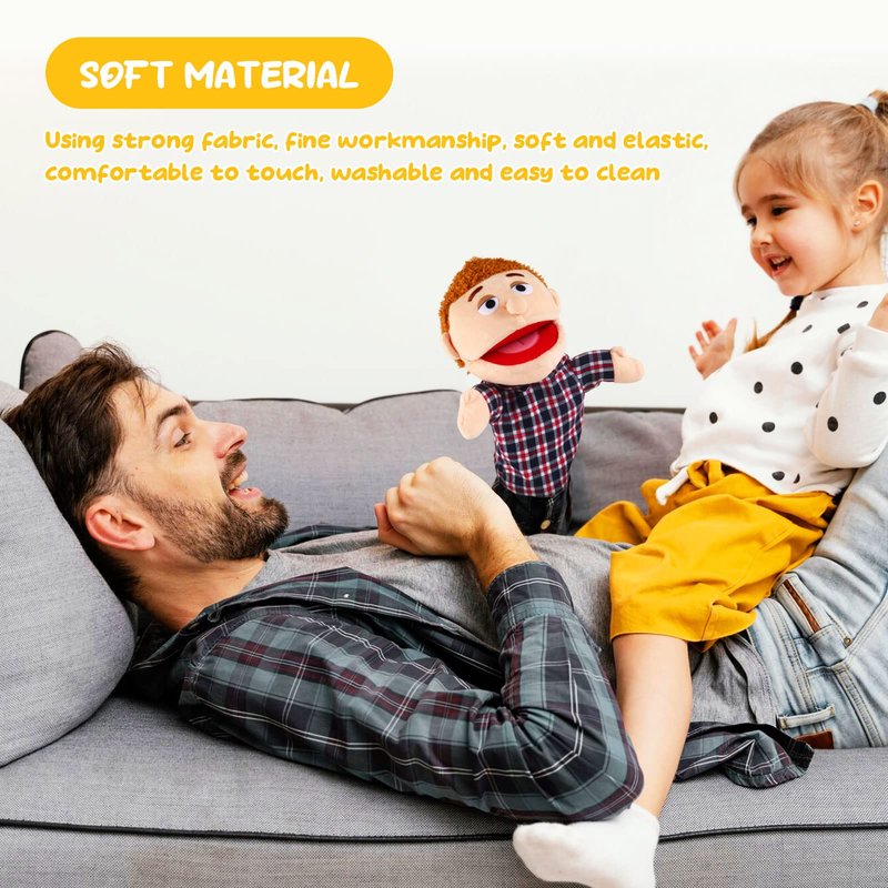 1 Pcs Family Hand Puppets 12 Inch Grandparents, Mom & Dad, Brother & Sister Plush Hand Puppet Toys Role-Play Toy Puppets for Kids Storytelling Imaginative Pretend Play Teaching Preschool(Dad)