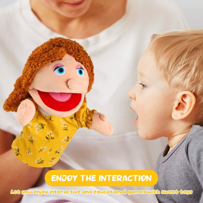 1 Pcs Family Hand Puppets 12 Inch Grandparents, Mom & Dad, Brother & Sister Plush Hand Puppet Toys Role-Play Toy Puppets for Kids Storytelling Imaginative Pretend Play Teaching Preschool(Mom)