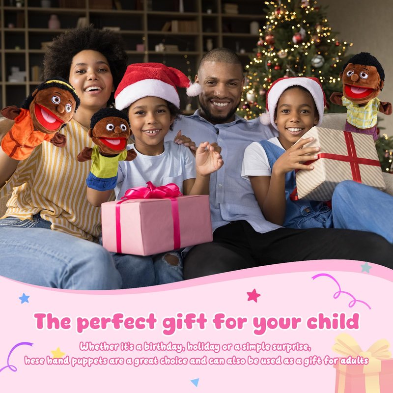 - A Fun Stuffed Animal Play - The 6 pcs african American family puppet is about 12 inch in length, 6 members choose one, the large size allows the hand puppet to move easily and to see movements and expressions even from a distance