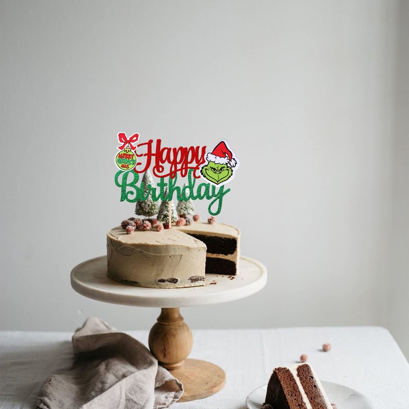 Grinch Happy Birthday Cake Topper for Merry Christmas Theme Baby Shower Kids Birthday Party Cake Decorations Supplies