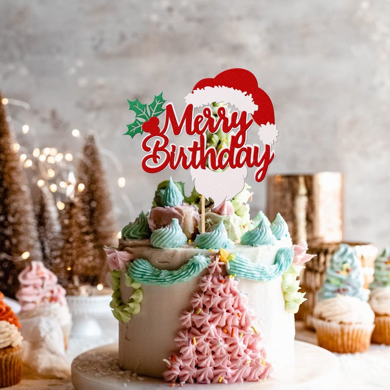 Merry Birthday Cake Topper for Christmas Theme Baby Shower Kids Birthday Party Cake Decorations Supplies
