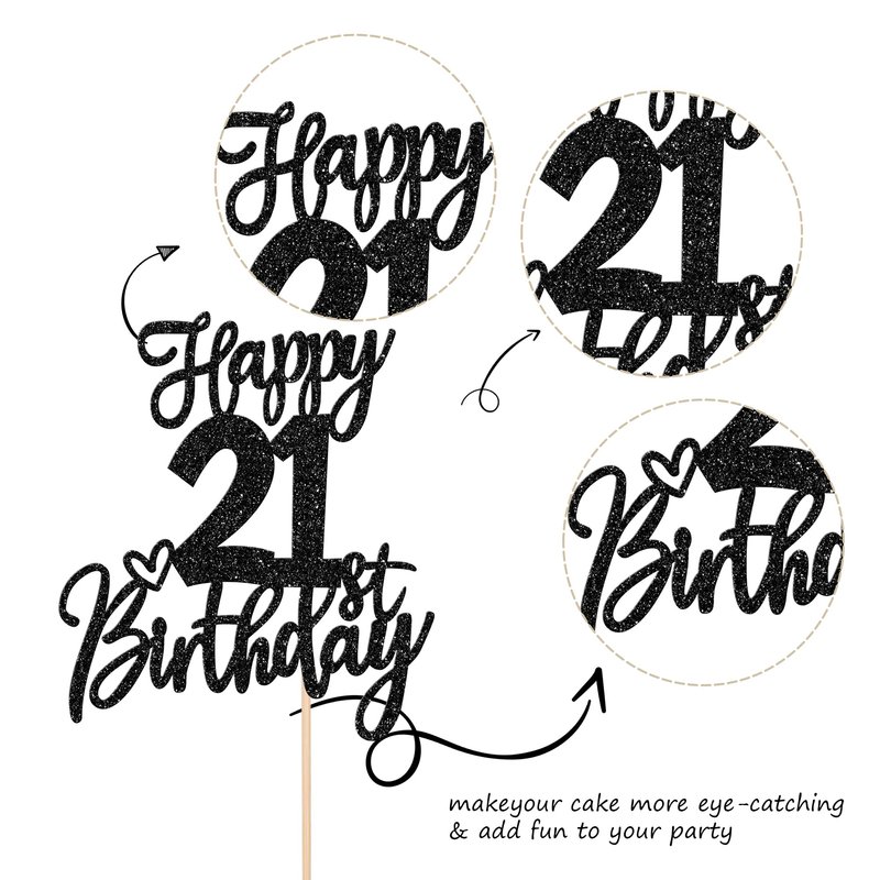 - Wide Usages ! The cake topper is perfect for happy 21st birthday theme party, cheers to 21 years theme party, 21st anniversary theme party cake decorations, they can make your cake more attractive and bring the fun to your party.You can also apply them for ice cream, fruits, cookies and other desserts.