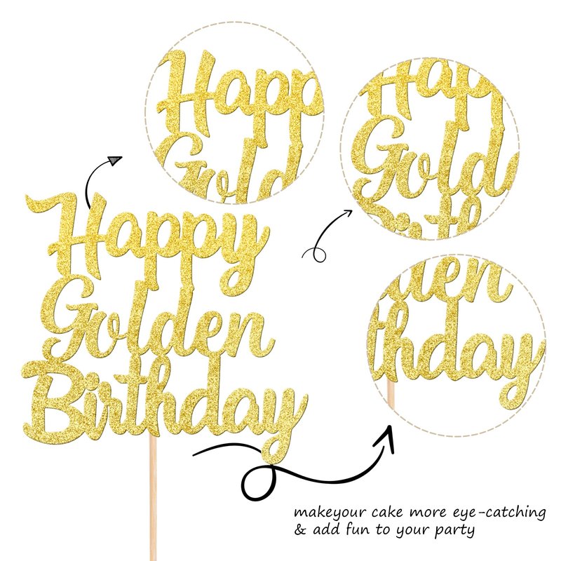 - Wide Usages ! The happy golden birthday cake topper is perfect for happy birthday theme party, happy anniversary theme party cake decorations, they can make your cake more attractive and bring the fun to your party.You can also apply them for ice cream, fruits, cookies and other desserts.