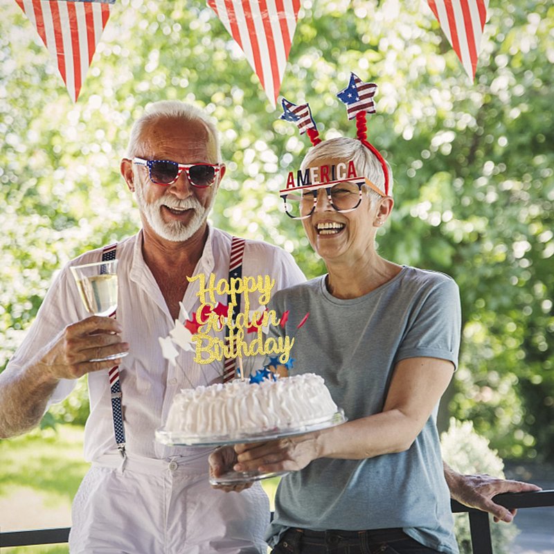 Happy Golden Birthday Theme Party Cake Topper Decorations