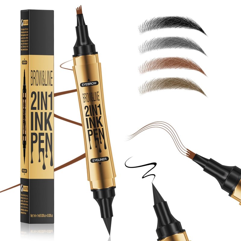 - 【Unique Innovation】Our eyebrow pencil is a 2-in-1 eyebrow pencil, one end is an eyebrow pencil with 4-prong micro-fork tip applicator & precision brush tip, and the colors are rich and changeable. There are four colors to choose from: light brown, dark brown, gray and black. The other end is black eyeliner. The texture of this eyebrow pencil is soft, and it can easily outline the natural eyebrow shape, making your eyes more lively.