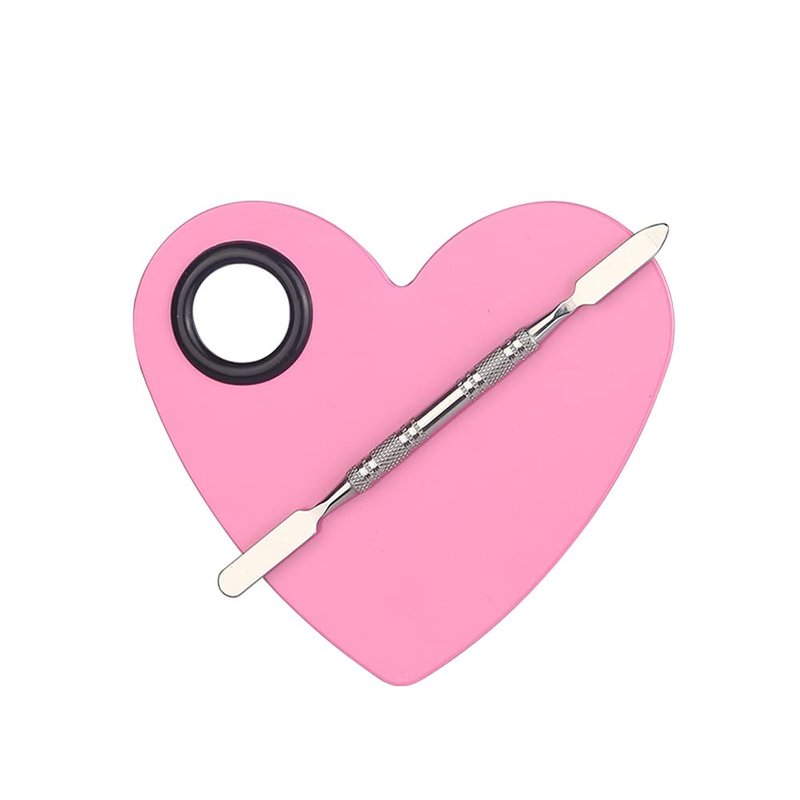 1 Set Heart Stainless Steel Cosmetic Makeup Palette with Spatula Cosmetic Artist Palette Mixing Palette with Spatula Nail Art Eye Shadow Lipsticks Mixing Makeup Tools, Pink