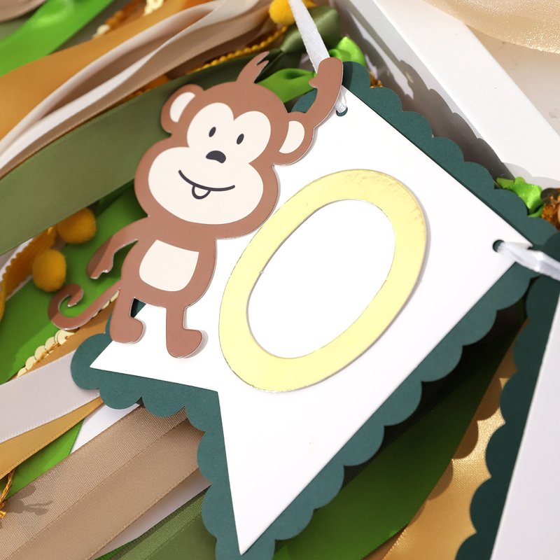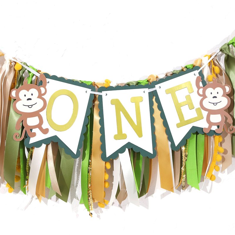 1 Year Old Birthday Banner,Baby Monkey First Birthday High Chair Banner, High Chair Banner 1 Year Old Birthday Boy, Safari Birthday High Chair Banner, Jungle Party First Birthday Chair Banner