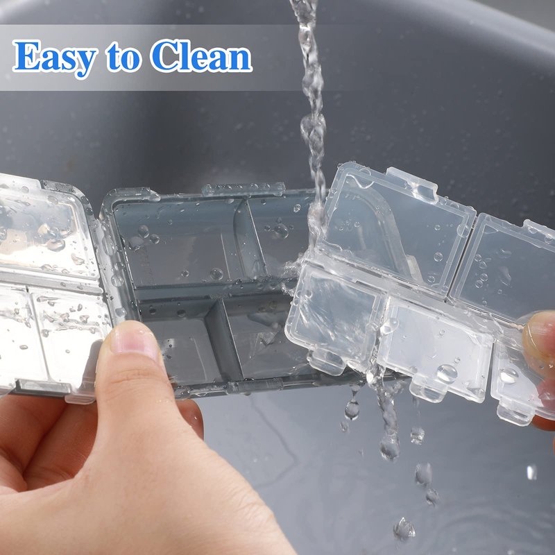 - "Strong clasp: the pill container with secure lid, each lid can open or shut via clasps individually, which can better seal the pill holder, and can keep your pills in good condition, can effectively prevent pills from falling and mixing"