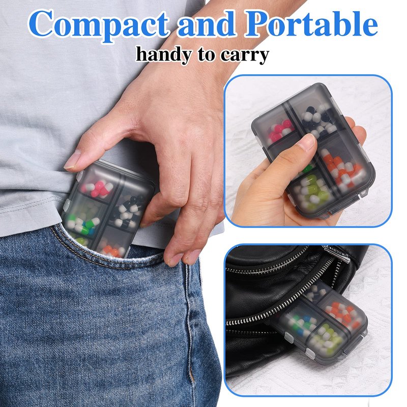 - "Easy to carry: mini pill holder with 10 individual compartments has more usages than you might think, small size and light weight, can put in your suit pocket and fit in your purse whenever you go, compact and portable"