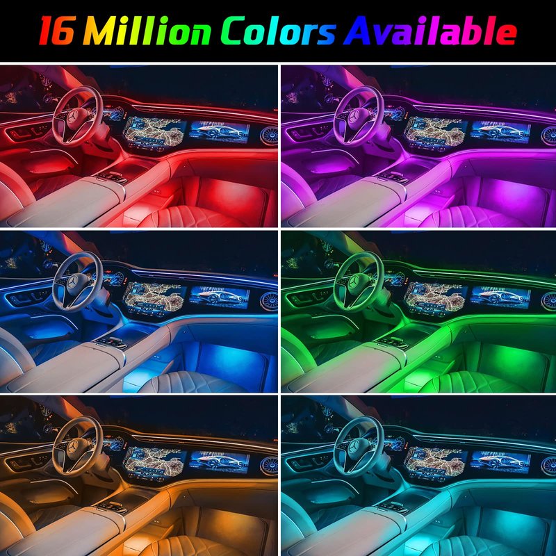 - 【Upgraded 10-in-1 Car Ambient Light】 This interior car LED light consists of 6 fiber optic lights and 4 under dash lights, and has 315-inch fiber optics, which can be flexibly installed in any car.