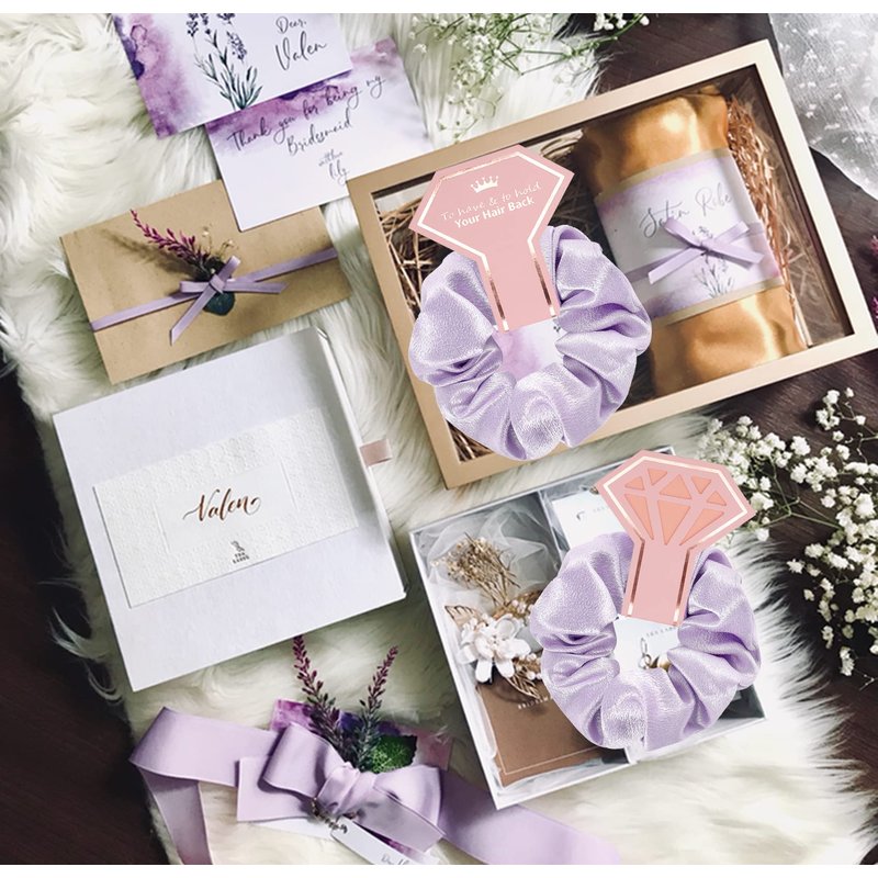 - Wanna a perfect bridesmaid gifts for your bridesmaids who helped you at the wedding ? Here we prepare suitable bridesmaid gifts: The cute scrunchies Hair Ties with Diamond card.