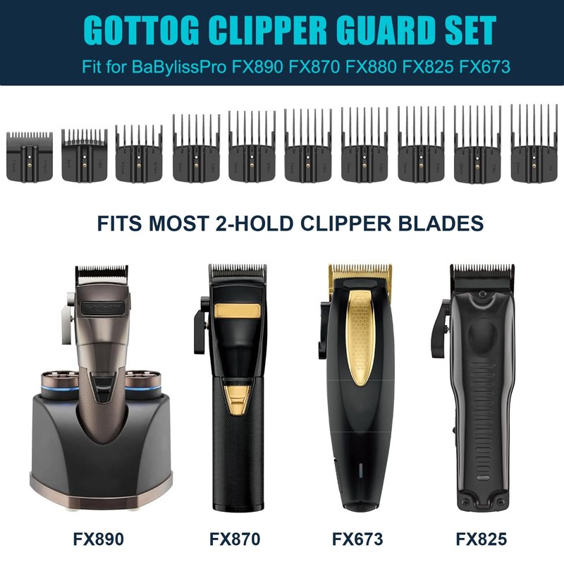 - GOTTOG 10 Pack Clipper Guards for BaBylissPRO Barberology Compatible with FX870, FX890, FX825, and FX673 Clippers and most 2-hold clipper blade system.