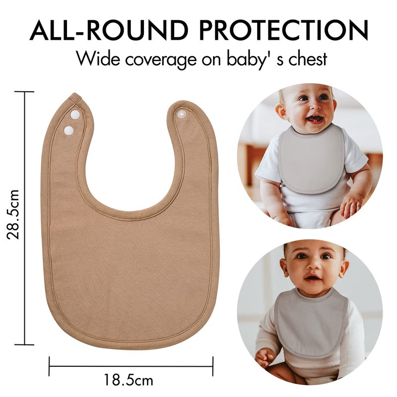 - COLORFUL DESIGN & AWESOME QUALITY — These baby snap bibs with top quality can give your baby boy or girl a stylish addition to their adorable outfits. The simple colors can easily match with your little one's OOTD. We want to keep your baby bibs fashionable and functional.