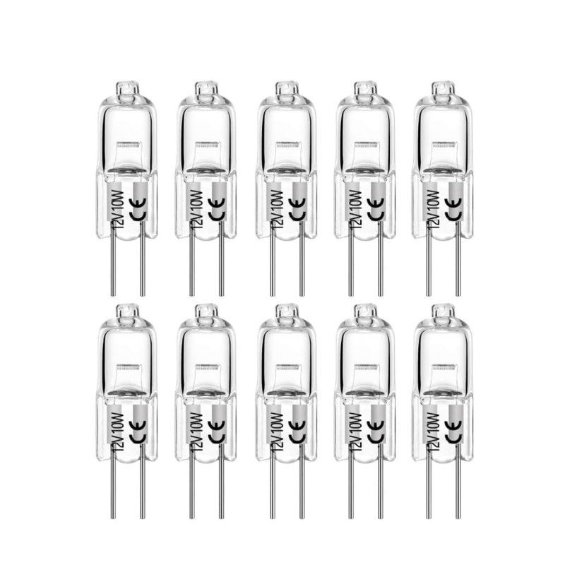 - LOW VOLTAGE USE: 12V - G4 2 PIN FITTING - 4MM SPACING BETWEEN 2 PINS - Pack of 10 units , wholesale pricing for retail customers - 20 Watt - 31mm Length / 1.57" Length G4 T3 Halogen Light Bulb 12 Volt - Suitable for AC or DC Low Voltage Lamps Worldwide
