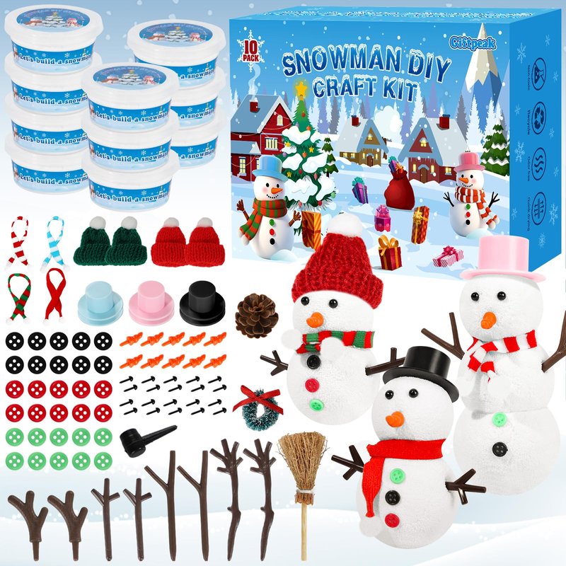 - 10 Pack Christmas Craft:Our kids snowman craft contains 10 clay, 20 eyes, 10 noses, 30 buttons, 2 antlers, 20 arms, 18 snowman decorations. Enough quantity to make different styles of snowman.Great for family night, sleepovers or just spending a quiet afternoon indoors