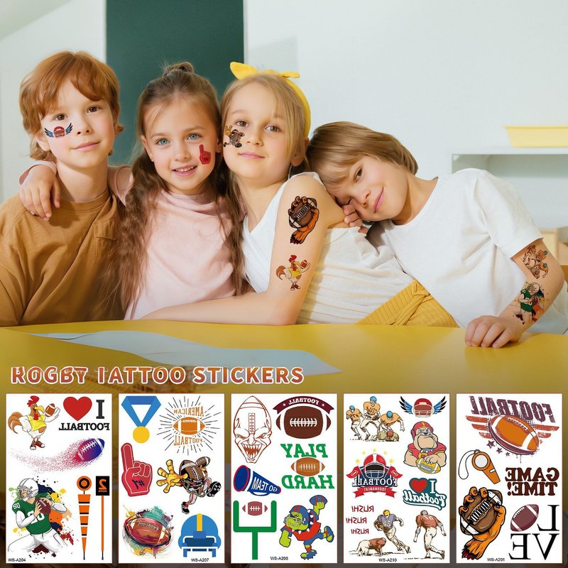 - VARIETY OF FUN DESIGNS::-- Featuring footballs, helmets, mascots, and other sports-themed elements, these tattoo stickers are a great way to decorate your arms, legs, or face to support your favorite team. Ideal for kids and adults alike.