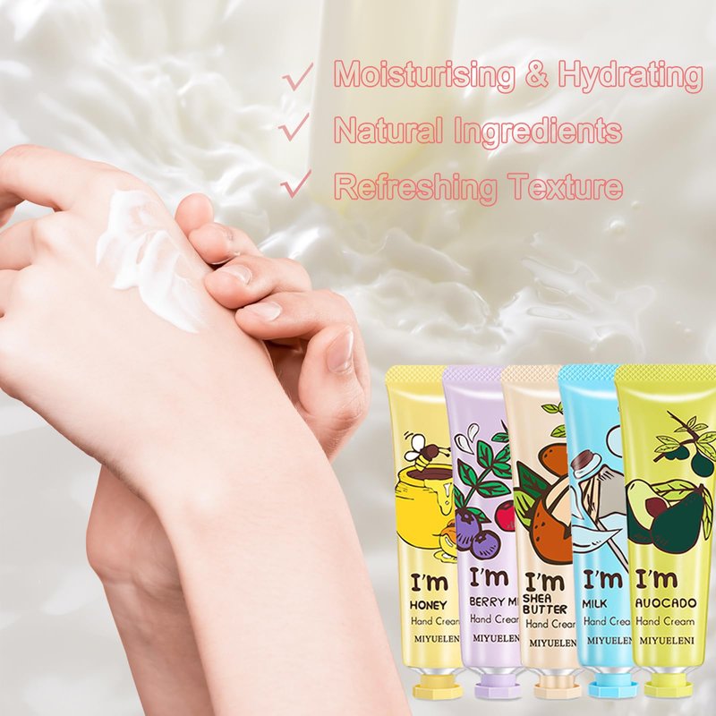 - 10 refreshing scents: Rose, Milk, Honey, Grape - ten scents to choose from. Our hand creams nourish your skin and you can choose your favourite scent from our 10 natural fragrances depending on your mood