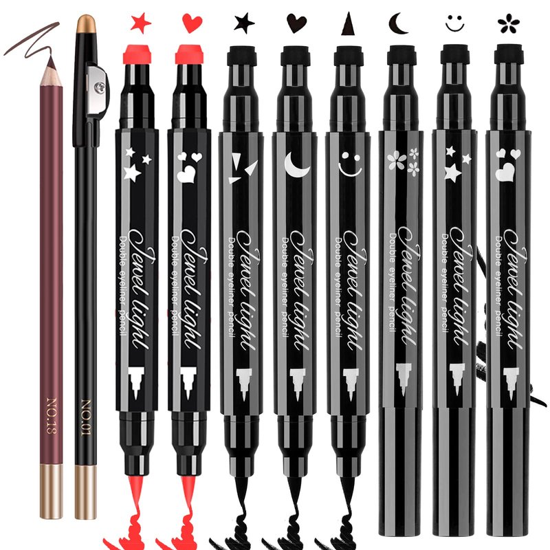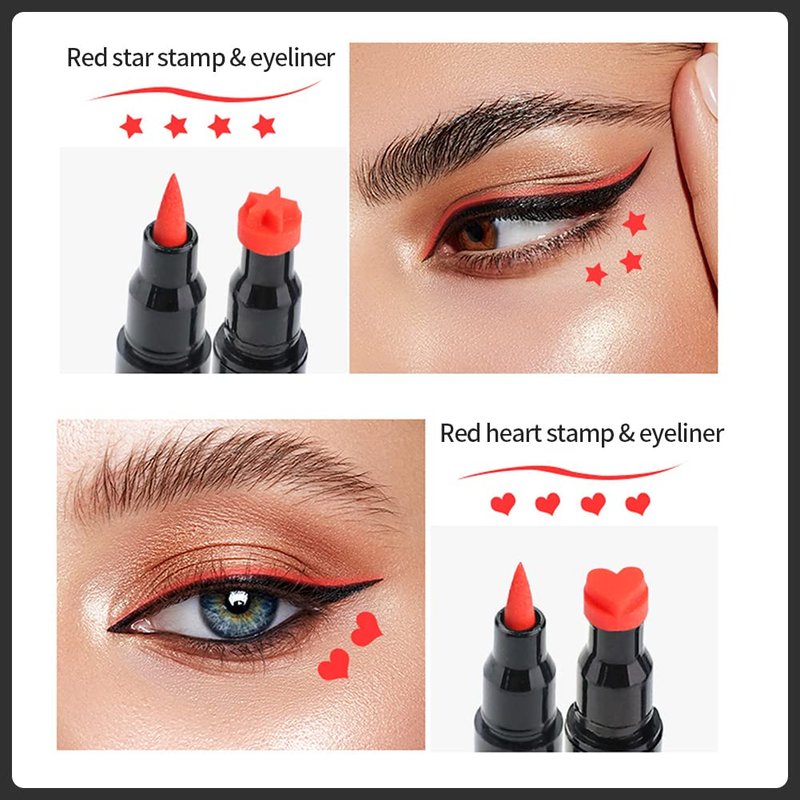 - 【Package Includes】 You will get 6 different shapes liquid eyeliner stamp in black color, 2 red eyeliner stamp in heart and star shapes, and 2 eyebrow pencils with a pencil sharpener in this eyeliner set. The eyeliner stamps comes with Heart/Flower/Moon/Star/Smiley /Triangle shapes to create your charming and personalized cat eye.