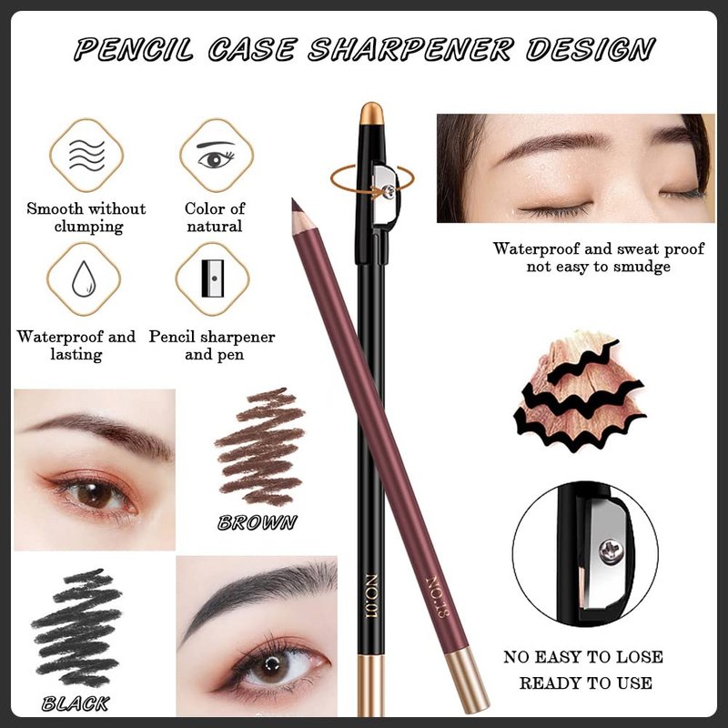 - 【Dual-use Eyebrow Pencil】 Not only a eyebrow pencil, but only can be used as an eyeliner. Each eyebrow pen is equipped with a pencil sharpener, so you no need extra pencil sharper, very convenient and time-saving. The tips on the eyebrow pen are also soft and easy to draw, it can precise definition for a thin or thick line, fitting to the shape of your eyes. Color goes long lasting,