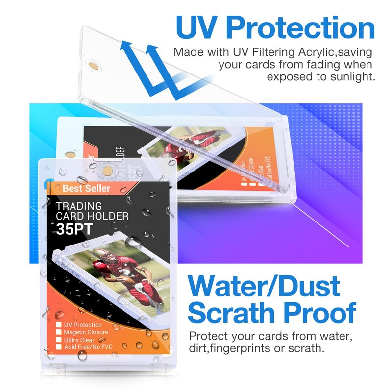- UV Protection + Diamond Corners: The Sports Card Holders have UV Protection - Protecting your cards from fading, and designed with diamond corners keeping your cards safe within the holder. Perfect fit.