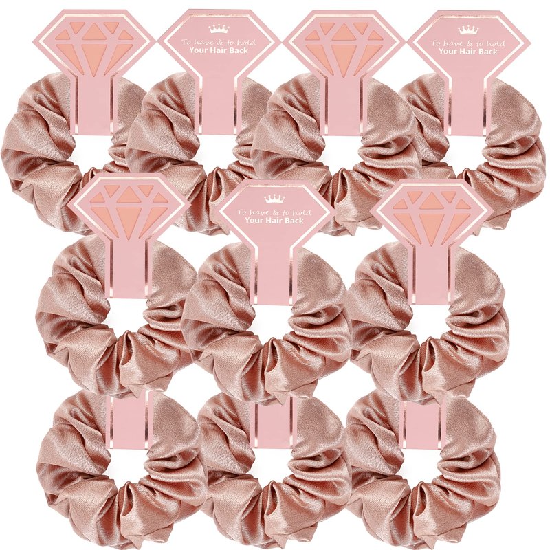10 PACK Scrunchies for Bridesmaids, Proposal Gifts, Elastics Hair Ties, Bachelorette Party Favors (To Have and To Hold Your Hair Back) RoseGold