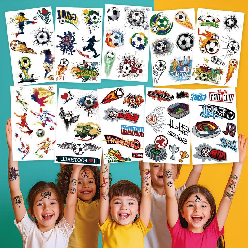 - SAFE AND LONG-LASTING::-- Made with skin-safe materials, these soccer tattoos are gentle on the skin and long-lasting throughout your event. Whether for kids or adults, they will stay in place for hours, making them perfect for sports parties or game day.