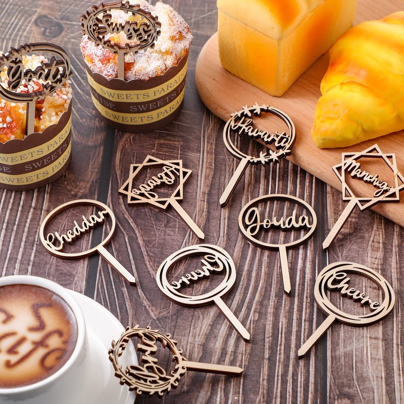 10 Packs Cheese Labels Markers for Charcuterie Board Cheese Markers Food for Buffet Picks for Christmas Wedding Birthday Party Cocktail Dinner Food (Wood)