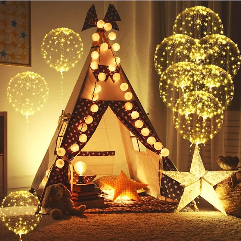 10 PACKS LED Bobo Balloons, Clear Light Up Balloons,Helium Glow Bubble Balloons with String Lights for Party Birthday Wedding Quinceanera Decorations (Warm White)