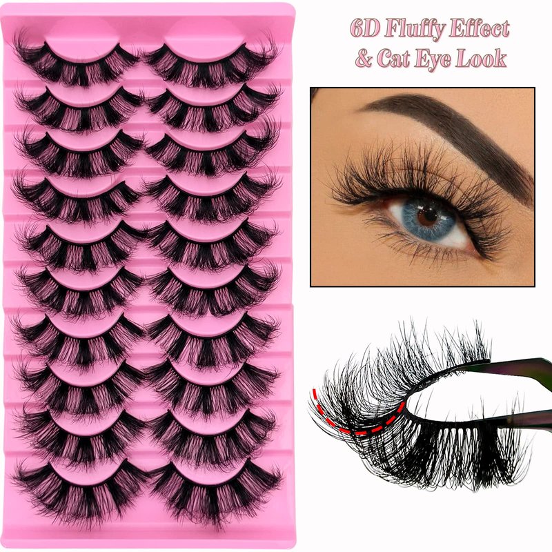 mink lashes fluffy wispy cat eye lashes 20mm long eyelashes Dramatic eye lashes faux mink C D curly big eye lashes look like extensions 6D 8D soft thick volume crossed fake lashes natural look strip lashes pack 10 pairs Pestañas Postizas