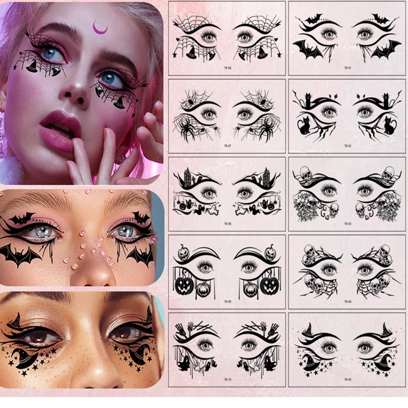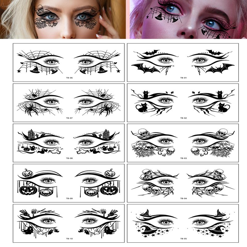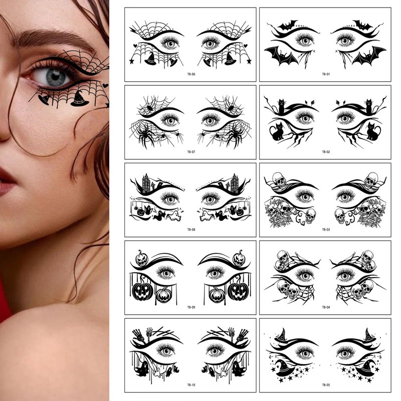 - You will get 10 pairs of Halloween Eye Shadow Stickers temporary tattoos in 10 different styles, which look real and natural can add more festive atmosphere