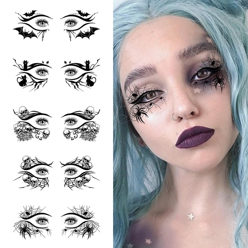 - Package: You will get 10 pairs of Halloween eye shadow sticker temporary tattoos in 10 different styles, which look real and natural. You can use it easily and the tattoo stickers can add more festive atmosphere