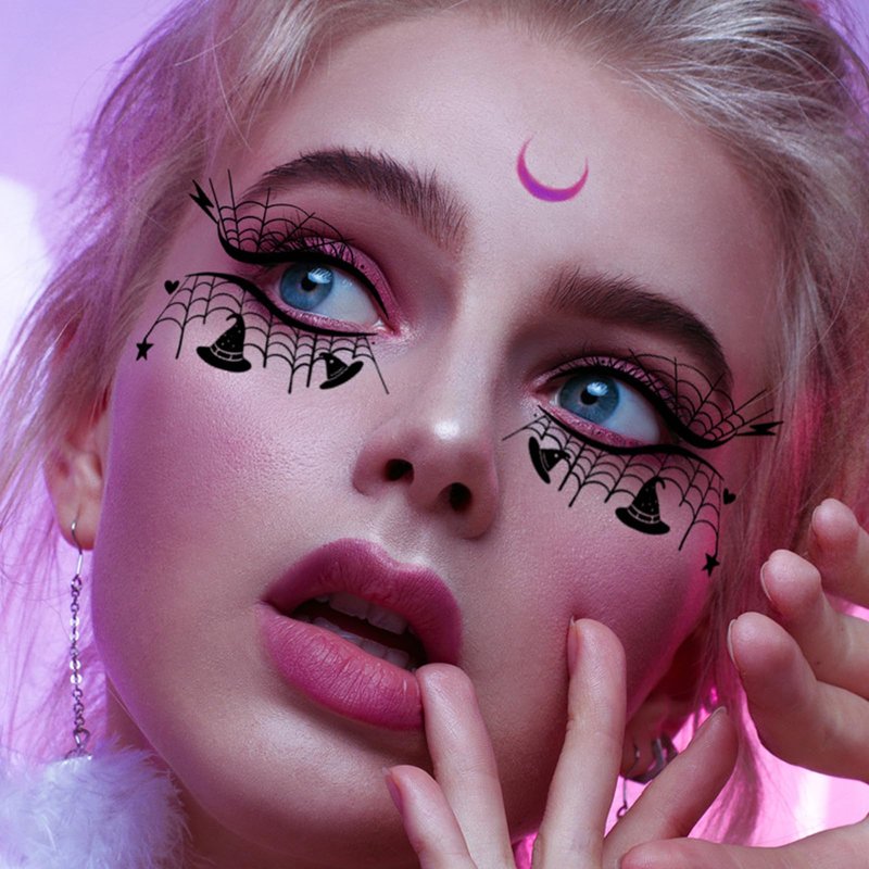 - Halloween Different Patterns Design: These eye shadow stickers are designed into many different shapes about Halloween, such as bats, spider webs, skull, the tree Pumpkin, bat of making you the focus of the crowd easily