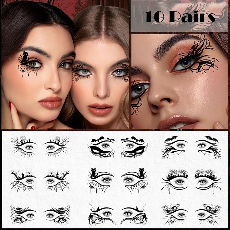 - 🌟【Halloween Eyeliner Stickers】You will get 10 pairs of Halloween eye shadow sticker temporary tattoos in 10 different styles, which look real and natural. You can use it easily and the tattoo stickers can add more festive atmosphere.