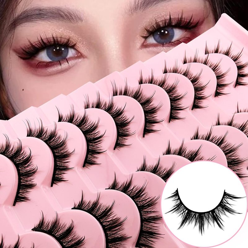 10 Pairs Manga Lashes Natural Look That Look Like Lashes Clusters,Anime Lashes 12mm Spiky Doll False Eyelashes,Cat-Eye Look Faux Mink Wispy Cosplay Japanese Korean Asian Lashes(10P-002)